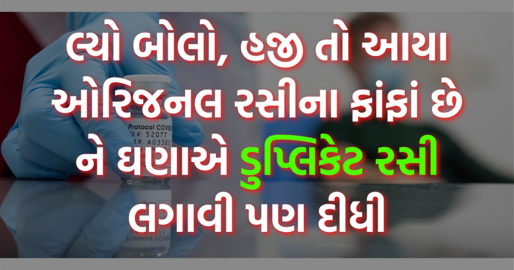 હજી તો ઓરીજનલ રસી ના વાંધા છે ને આ જગ્યા એ 70000 લોકો એ ડુપ્લિકેટ રસી મૂકાવી પણ દીધી…. Read More »
