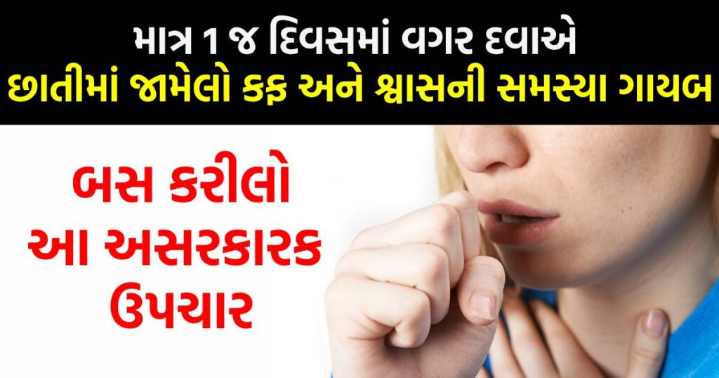જો કફની સારવાર કરવામાં ન આવે તો તે અન્ય ઘણી ગૂંચવણો તરફ દોરી શકે છે. આ ઘરગથ્થુ ઉપાયોથી છાતીમાં જામેલા કફથી છુટકારો મેળવી શકો છો. કફની સમસ્યા માટે એક ડુંગળી લઈને તેને છોલીને પીસી લેવી. હવે તેમાં એક લીંબૂનો રસ મિક્ષ કરવો. હવે એક કપ પાણીમાં આ મિશ્રણ નાખીને બે-ત્રણ મિનિટ સુધી તેને ગરમ કરવું. આંચ પર થી ઉતારી તેમાં એક ચમચી મધ નાખવું. હવે આ મિશ્રણને દિવસમાં ત્રણવાર પીવું, નિયમિત પીવાથી ગળફા અને કફ જામવાની સમસ્યા તરત દૂર થશે.