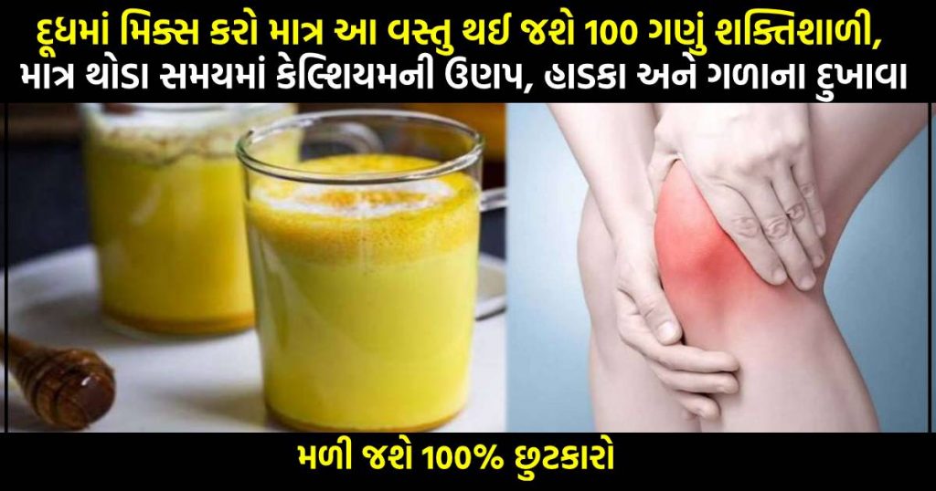 હળદરમાં હાજર કરક્યુમિન ના કારણે હળદરના દૂધના ફાયદા માં વધારો થાય છે. આ સિવાય તેમાં બળતરા વિરોધી ગુણધર્મો પણ છે સાથે હળદરનું દૂધ કેલ્શિયમથી ભરપૂર છે જે હાડકાંને મજબૂત બનાવવામાં મદદ કરે છે. તે સાંધાનો દુખાવો અને અન્ય ઘણા પ્રકારના દુખાવાને દૂર કરવામાં મદદ કરે છે.