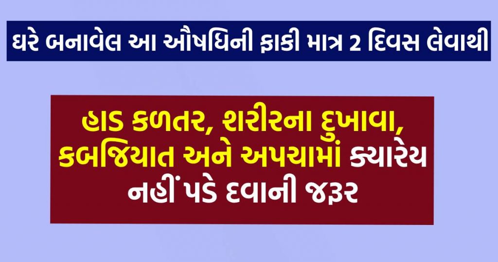 ૨૫૦ ગ્રામ મેથીના દાણા, ૧૦૦ ગ્રામ અજમો અને ૫૦ ગ્રામ કાળી જીરીને લઈ, ત્રણેયને દસેક મિનીટ શેકી લેવા. શેખી ગયાં બાદ આ મિશ્રણ ઠંડુ થાય એટલે તેને ક્રશ કરીને એક એર ટાઈટ બોટલમાં ભરી લેવું. આ ચૂર્ણને રોજ સુતા પહેલાં એક કપ નવશેકા પાણીમાં એક ચમચી ચૂર્ણ નાખીને પી લેવું, માત્ર એક જ સમય ચૂર્ણ લેવું, અને એક ચમચીથી વધારે ન લેવું. ૩ મહિના સુધી નિયમિત આ ચૂર્ણના સેવનથી શરીરમાં રહેલી ગંદકી અને હાનીકારક તત્વો દુર થાય છે. અને શરીર અંદરથઈ સ્વચ્છ બને છે.