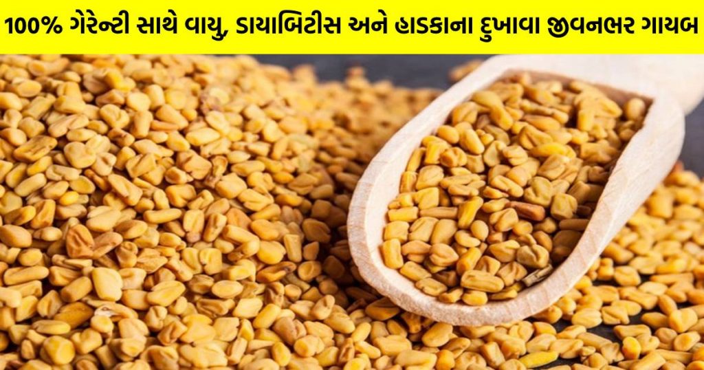 મેથી વાયુને દૂર કરે છે. ભૂખ લગાડે છે, પાચનશક્તિ વધારે છે અને શરીરને પુષ્ટ કરે છે. ખીચડીમાં મેથી નાંખી શકાય, વઘારમાં એ વાપરી શકાય. મેથીનો સંભારો કરીને પણ રોજ લઈ શકાય. કોઈ પણ રીતે આહારમાં મેથીનો ઉપયોગ જરૂરથી કરવો જોઈએ. મેથીને ઘીમાં સેકીને એનો લોટ બનાવવો. પછી એના લાડુ બનાવી રોજ એક લાડુ ખાવો. આઠ-દસ દિવસમાં જ વાયુને કારણે થતી હાથ-પગની પીડામાં લાભ થશે.