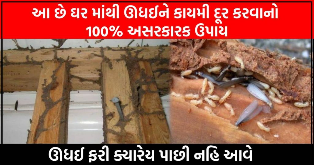 ઉધઈ કીડીની માફક ઝૂંડમાં ફરતી જોવા મળે છે. ઉધઈનો ખોરાક લાકડું, લાકડામાંથી બનેલી વસ્તુઓ અને ઝાડ-પાંદડાં હોય છે. તે લાકડાને એવી રીતે ખાય છે કે પછી લાકડું આખું સડી જાય છે અને કોઈ પણ કામનું નથી રહેતું. ઉધઈ આપણા ઘર ઉપરાંત જંગલ અને જમીનની અંદર રાફડો બનાવીને રહેતી પણ જોવા મળે છે. લાંબા સમયથી બંધ પડેલાં મકાનોમાં ઉધઈ ઝડપથી ફેલાતી હોય છે. તો ચાલો હવે આપણે જાણીએ આ ઊધઈને દૂર કરવાના ઉપાયો.