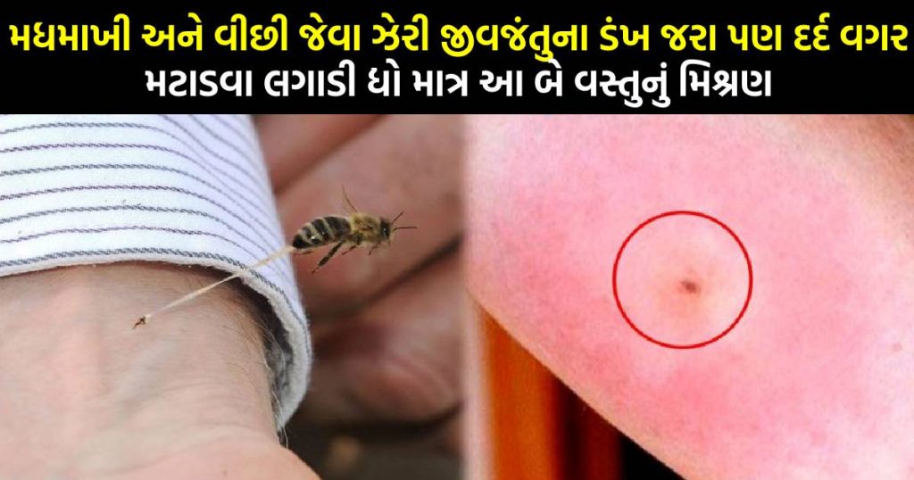 સાપ, વીંછી, મધમાખી જેવા જીવ કરડે તો શરીરમાં ઝેર ફેલાવાનો પણ ખતરો રહે છે. આ સમયે ઉપચાર માટે કેટલાક ખાસ ઘરેલૂ ઉપાય અપનાવવા બહુ જરૂરી બની જાય છે. જો ઉપચારને તરત જ કરવામાં આવે તો જીવજંતુઓના કરડવાથી થતો દુઃખાવો, સોજો, ઝેર ફેલાવવું વગેરે સમસ્યાઓમાંથી રાહત મેળવી શકાય છે.